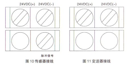 變送器為兩線制:采用二芯電纜,渦街“+”、“-”端子分別接+24V及測試儀表信號輸入“+”端,信號“-”端與24VDC“-”端鏈接,該回路輸出4~20mA。見圖11