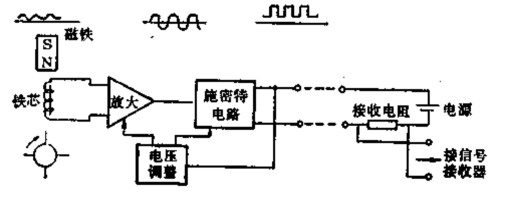 前置放大器由磁電感應(yīng)轉(zhuǎn)換器與放大整形電路兩部分組成,示意圖見圖3-4所示。