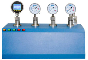 電動(dòng)壓力校驗(yàn)臺(tái)包括氣壓(真空)和液壓電動(dòng)校驗(yàn)臺(tái)。臺(tái)面有加壓、減壓、細(xì)調(diào)按鈕,備有三個(gè)通道可同時(shí)調(diào)校三臺(tái)壓力儀表,減輕了工作強(qiáng)度,提高了工作效率。壓力發(fā)生采用本公司專利技術(shù),升壓快,壓力平穩(wěn),是工礦企事業(yè)單位計(jì)量部門(mén)校驗(yàn)壓力儀表理想的設(shè)備。