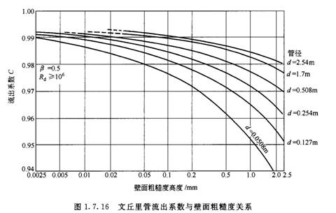 文丘里管內(nèi)壁沉積臟物起二重作用:減少通道截面積和增加表面粗糙度。兩種影響綜合起來使流出系數(shù)降低,如圖1.7.16所示。